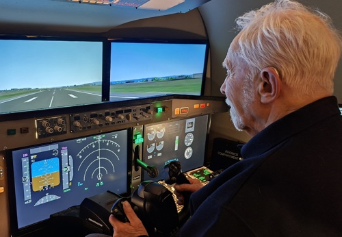 Til slutt fikk de som ønsket prøve seg i museets flysimulator. Noen var svært ivrige, men krasjene kom fort - særlig når landingen skulle gjennomføres.