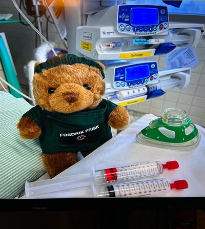 Bamsen Fredrik Frisk ble i sin tid kjøpt inn til Anestesiavdelingen på Ahus for å brukes til å vise barn, små og store, hvordan sprøyter blir satt og som trøst når de våkner fra narkose. Etter noen år har bamsen blitt svært populær og barn på Dagkirurgisk senter får nå også bamsen. Etter hvert går det mot at det er ønskelig at alle barn som er til behandling på sykehuset får en slik bamse og det innebærer at behovet øker.
